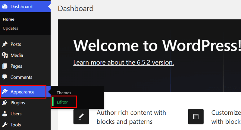 Moving forward, you can now select a suitable template for your web pages. For that, go to ‘Appearance > Editor.’